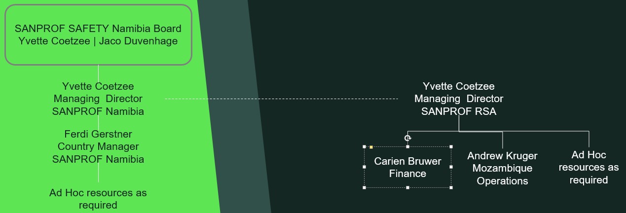SANPROFwasinitiallyasistercompanyofSHEQPROF(Establishedin2015). DuetotheCovid-19impactSANPROFsplitfromSHEQPROFin2020. SANPROFcontinuedtosupplyqualityservicesandsupporttotheirclients throughout Southern Africa.WiththegrowthindemandinNamibia,SANPROFSafetyNamibiawas establishedin2023.TheboardofdirectorsforSANPROFSafetyNamibia consistofYvetteCoetzee,alsotheManagingdirectorfortheNamibia entityandJacoDuvenhagewhoownsSwakopmundElectricalServices (SES).AtSANPROFwefacilitatesocialinvestmentthroughthecreationofasafe andhealthyworkingenvironment,thusensuringaproductiveand informedworkforce.Westrivetodevelopourclientsintosustainableand socially responsible organizations through couching and mentoring.We can provide support local and internationally.South Africa•AssistclientwiththesuccessfulcompletionoftheChitotolorecovery modular plant•Assistclientwiththesuccessfulcompletionoftheconstructionphaseof theVenetiaGreasebeltupgradeprojectattheDeBeersVenetiamine as well as the Nokeng Fluorspar rectification project•AssistclientswithdevelopingandachievingintegratedISO9001and 45001 accreditation•Assist clients with compliance assessment throughout South AfricaNamibia•AssistclientwithsafeprojectexecutionattheNAMDEBoperationsin OranjemundandtheLangerHeinrichUraniumminerestartprojectin Swakopmund.•Assist several Namibia companies with developing HSE systems.Mozambique•Assist and supply resources to clients for the execution of projects.